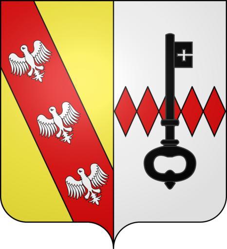| Keywords: Blason de la ville de Flétrange (Moselle).svg blazon of en city of Flétrange Flétrange Moselle Flétrange fr Parti au premier d'or à la bande de gueules chargée de trois alérions d'argent au second d'argent à la fasce fuselée de cinq pièces de gueules à la clef de sable en pal brochant sur le tout spax89 Projet Blasons Own spax89 v -Blasons other versions Flétrange Alerions in heraldry Coats of arms of cities in Moselle SVG coats of arms of France Derivatives of the Coat of arms of Lorraine 1 key sable in heraldry DEFAULTSORT Flétrange |