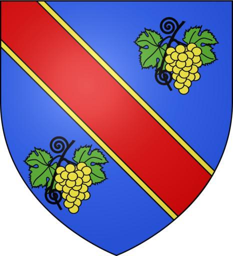 Keywords: Blason de la ville de Domérat (03).svg blazon of en city of Domérat Domérat Allier Domérat Allier fr D'azur à la bande d'or chargée d'une bande de gueules accompagnée de deux grappes de raisin aussi d'or tigées et vrillées de sable feuillées de sinople spax89 Projet Blasons Own spax89 v -Blasons other versions Domérat Coats of arms of cities in Allier SVG coats of arms of France DEFAULTSORT Domérat |