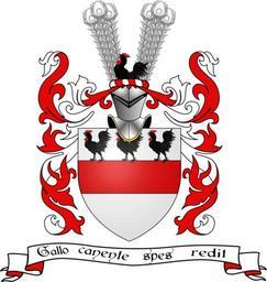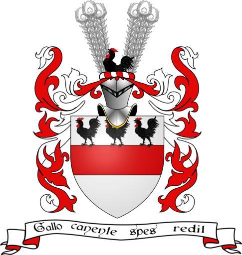 MAKE A MEME View Large Image Blason famille Occoche de Manchicourt (avec ornements).svg fr Blason de la famille d'Occoche de Manchicourt d'argent à la fasce de gueules accompagnée en chef de trois coqs rangés de sable crêtés et barbés du second soutenus de la ...