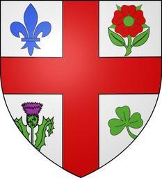 Keywords: Blason ville ca Montreal (Quebec).png Blason de la ville de Montréal Québec d'argent à une croix de gueules; cantonnée au premier d'une fleur de lys d'azur; au deuxième d'une rose de gueules tigée feuillée et pointée de sinople; au troisième d'un chardon du même fleuri de pourpre; au quatrième d'un trèfle de sinople Own 2007-05-25 Syryatsu Coats of arms of Montreal Thistle of Scotland Red cross in white field in heraldry Roses in heraldry |
