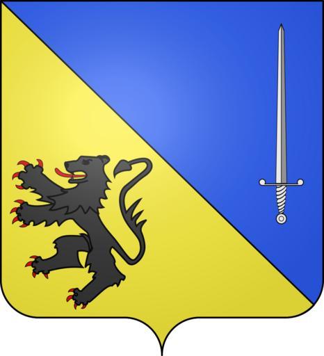 Keywords: Blason ville fr Marigny-Saint-Marcel.svg fr tranché d'azur à l'épée haute d'argent en pal et d'or au lion de sable armé et lampassé de gueules own Jean92 dit le Comte 2010-07-15 Marigny-Saint-Marcel