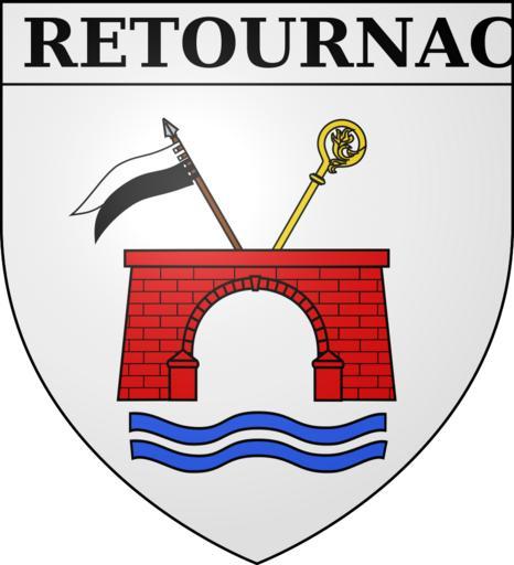 Keywords: Blason ville fr Retournac(Haute-Loire).svg fr d'argent au pont droit alésé d'une arche de gueules soutenu d'une jumelle ondée d'azur à la bannière coupée d'argent et de sable la hampe au naturel posée en bande et une crosse d'or posée en barre les deux issant du tablier du pont au comble aussi d'argent chargé de l'inscription RETOURNAC en capitales de sable 2013-09-22 18 19 14 own Jacques63 cc-zero Uploaded with UploadWizard Coats of arms of cities in Haute-Loire Retournac Bridges in heraldry |