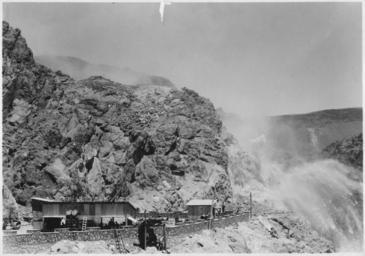 Keywords: "Blasting operations below Lookout Point for Black Canyon Highway." - NARA - 293709.jpg Scope and content Photograph from Volume Two of a series of photo albums documenting the construction of Hoover Dam Boulder City Nevada General notes 293709 Local identifier Department of the Interior Bureau of Reclamation Engineering and Research Center 05/18/1981 - 03/04/1988 NARA's Rocky Mountain Region Denver NRGA Building 48 Denver Federal Center West 6th Avenue and Kipling Street Denver CO 80225-0307 1932-07-09 Record group Record Group 115 Records of the Bureau of Reclamation 1889 - 2008 Record group ARC 444 Photograph albums compiled 1903 - 1972 Series ARC 293611 File unit File unit ARC Variant control numbers NAIL Control Number NRG-115-CONSTPHO85006-BC21331 Other versions <gallery> File Blasting_operations_below_Lookout_Point_for_Black_Canyon_Highway _-_NARA_-_293709 tif tif File Blasting_operations_below_Lookout_Point_for_Black_Canyon_Highway _-_NARA_-_293709 jpg jpg </gallery> NARA-cooperation PD-USGov Construction of the Hoover Dam |