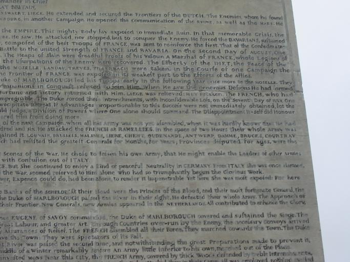 | Keywords: Blenheim-column-south-middle-right.jpg Transwiki approved by en ws User JVbot page is/was http //en Wikisource org/w/index php title Image 3ABlenheim-column-south-middle-right jpg here 2006-04-22 Original uploader was Scil100 at http //en Wikisource org en Wikisource This image is in the en s public domain due to its age License PD-old page history wikitable link date/time username edit summary ---- http //en wikisource org/w/index php title Image Blenheim-column-south-middle-right jpg redirect no oldid 414023 13 43 19 October 2007 en s User JVbot ---- http //en wikisource org/w/index php title Image Blenheim-column-south-middle-right jpg redirect no oldid 414023 03 49 7 August 2007 en s User Jayvdb ---- http //en wikisource org/w/index php title Image Blenheim-column-south-middle-right jpg redirect no oldid 125213 10 14 22 April 2006 en s User Scil100 <nowiki> One of a number of photos showing the text on the Column of Victory in the grounds of Blenheim Palace Oxfordshire UK To accompany an article containing a text transcript which I will be creating very shortly </nowiki> Blenheim Column of Victory |