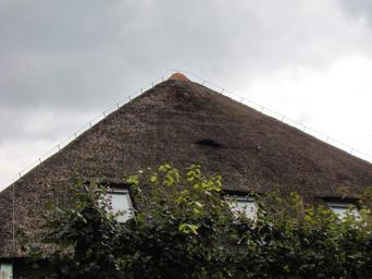 Keywords: Bliksemdraad.jpg lightning rod on a thatched roof own HdeK Lightning rods in the Netherlands Thatched roofs Thatched roofs technology