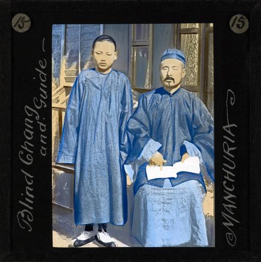 | Keywords: Blind Man and Guide, Manchuria, ca. 1882-ca. 1936 (imp-cswc-GB-237-CSWC47-LS8-015).jpg en <br> Blind Man and Guide Manchuria ca 1882-ca 1936 Blind Chang and Guidea Photograph of a blind man and a young boy who is his guide Both are dressed in blue Chinese traditional robes The blind man is seated with a book on his knee His guide is standing beside him ; This belongs to a series of Church of Scotland Foreign Missions Committee lantern slides relating to the Scottish missionary Dugald Christie Dugald Christie was born in Glencoe in Scotland and studied medicine under the auspices of the Edinburgh Medical Missionary Society In 1882 along with his first wife Elizabeth he went to Manchuria to work as a medical missionary of the United Presbyterian Church of Scotland He worked initially in Newchang and later moved to the capital of Mukden where he opened Manchuriaas first hospital in 1884 In 1912 he established Mukden Medical College Dugald Christie retired in 1923 and died in Edinburgh in 1936 Photographer Unknown Filename imp-cswc-GB-237-CSWC47-LS8-015 tif Coverage date 1882/1936 Part of collection International Mission Photography Archive ca 1860-ca 1960 Geographic subject region Manchuria Type images Part of subcollection Photographs from the Centre for the Study of World Christianity University of Edinburgh U K ca 1900-ca 1940s Repository name Centre for the Study of World Christianity Archival file impaunpub_Volume7/1679 url Repository address The University of Edinburgh School of Divinity New College Mound Place Edinburgh EH1 2LX United Kingdom Geographic subject country China Format aacr2 1 lantern slide 8 x 8 cm Geographic subject continent Asia Rights Contact the repository for details Part of series Dugald Christie LS8 Repository email divinity-CSWC ed ac uk Subject lcsh Keyword Blindness; Young men Date created 1882/1936 Publisher of the digital version University of Southern California Libraries Subject aat genre group portraits Format aat lantern slides Legacy record ID impa-m69106 Access conditions http //www ed ac uk/schools-departments/divinity/research/centres/world-christianity/collections-resources File GB 237 CSWC47/LS8/15 1882/1936 author http //digitallibrary usc edu/cdm/ref/collection/p15799coll123/id/64798 PD-old-70-1923 Magic lantern images Images from USC Digital Library uploaded by Fæ International Mission Photography Archive ca 1860-ca 1960 |