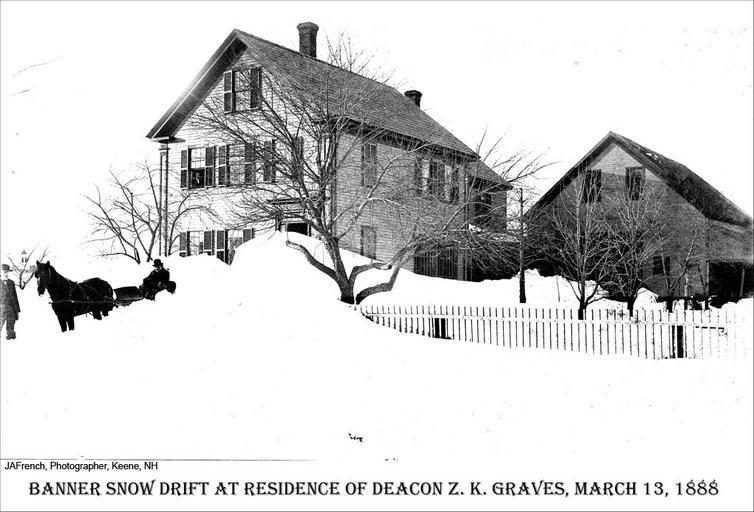 Banner snow drift at residence of Deacon Z.K. Graves, Keene New Hampshire.