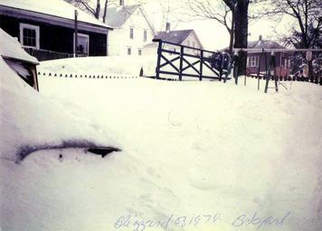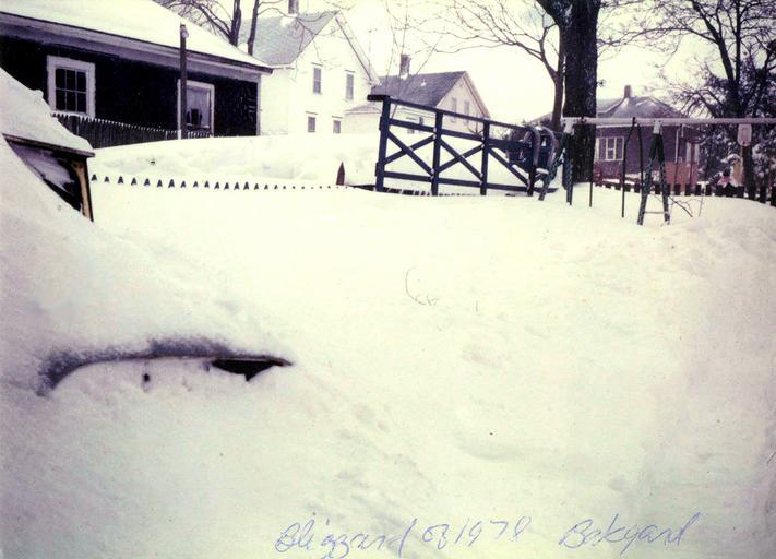 Keywords: Blizzardof78R(Backyard.jpg en The Great Blizzard of 1978; Photo taken of backyard on Maple Street Woonsocket RI To get out of the home we had to shovel INTO the home The snow drifted to within 2 inches of the top of the door Drifts were as high as 10' Here you can't see the above ground pool or the Jeep in the yard They are totally covered Own Dahoov2 1978-02 Work of of the submitter Northeastern United States blizzard of 1978 Rhode Island in the 1970s Nature of Rhode Island Woonsocket Rhode Island |
