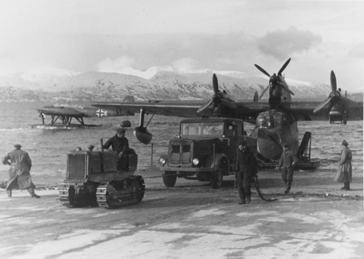 Keywords: Blohm&Voss BV 138 and Heinkel He 115 at Kirkenes c1943.jpg Crews pull a German Blohm Voss BV 138C seaplane from the water at at Kirkenes Norway during World War II In the left background is a Heinkel He 115 float plane from Küstenfliegergruppe 406 coded K6+EH Official U S Navy photo http //www history navy mil/our-collections/photography/numerical-list-of-images/nhhc-series/nh-series/NH-45000/NH-45564 html NH 45564 from the U S Navy http //www history navy mil Naval History and Heritage Command ca 1943 U S Navy PD-USGov PD-old Blohm Voss BV 138 Heinkel He 115 Norway in World War II Kirkenes Airport Høybuktmoen |