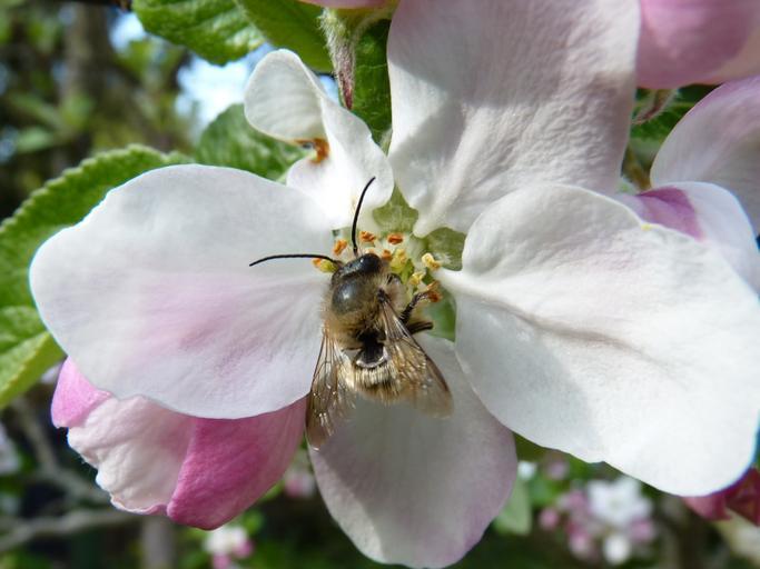 Keywords: blossom bloom bee apple flower insect macro close pollination plant nature spring garden bloom sprinkle apple blossom petals