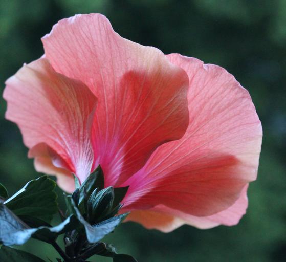 Keywords: blossom bloom hibiscus detail pink bud leaves evening close