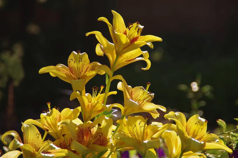 Keywords: blossom bloom lily flower yellow plant bloom macro nature