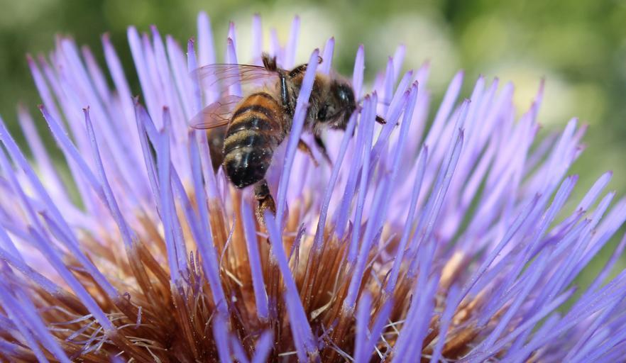 Keywords: blossom bloom purple bee