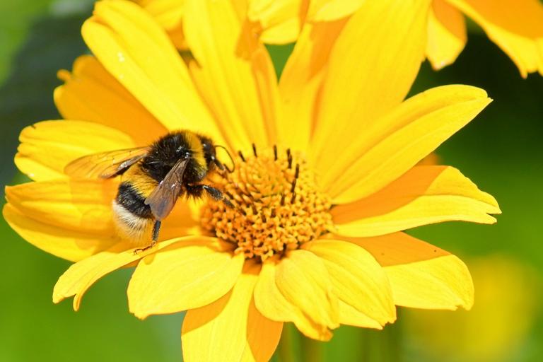 Keywords: blossom bloom yellow yellow flower hummel insect