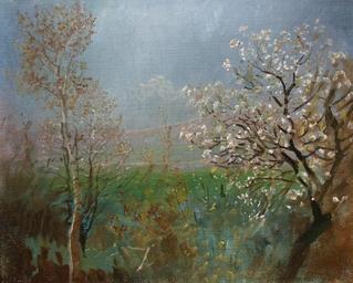 Keywords: Blossoming tree - painting by László Mednyánszky.jpg Artwork Creator László Mednyánszky Blossoming_tree between 1875 1895 oil canvas accession number object history Part of a collection of a Hungarian emigrant couple in South America from 1947 to 2010 According to their will the paintings were returned to Hungary credit line own ; Photo by Szilas at the exhibition in the Gallery of Judit Virág Budapest PD-old-auto 1919 PD-old-auto 1919 Paintings by László Mednyánszky in private collections |