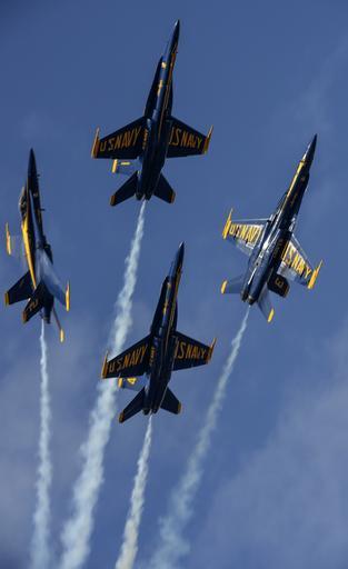 Keywords: blue angels navy precision planes training sortie maneuvers demonstration team team work aircraft jet fighters aerobatics show airplanes