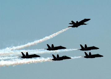 | Keywords: Blue Angels Texas Thunder 2005 airshow.jpg All six F/A-18A Hornets assigned to the U S Navy flight demonstration team the Blue Angels perform over the crowd of 100 000 people at the Texas Thunder 2005 Air Show Source http //www news navy mil/view_single asp id 23333 http //www news navy mil/management/photodb/photos/050402-N-6046R-005 jpg en wikipedia Transfer was stated to be made by User Dual Freq PD-USGov-Military-Navy original upload log page en wikipedia 050402-N-6046R-005 jpg 2005-10-18 22 31 Alkivar 2100×1500×8 383733 bytes <nowiki>The Blue Angels during a performance Source http //www news navy mil/view_single asp id 23333 http //www news navy mil/management/photodb/photos/050402-N-6046R-005 jpg PD-USGov-Military-Navy </nowiki> Air shows in the United States Blue Angels F/A-18 Hornet in 2005 |