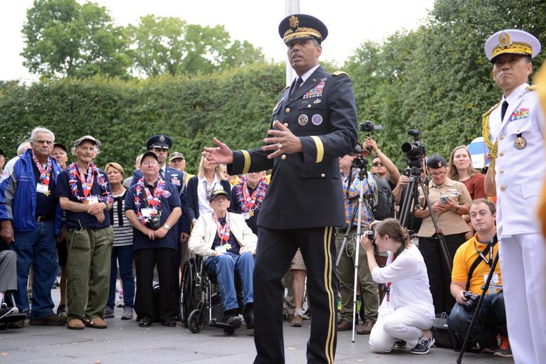 | Keywords: Blue Ridge Honor Flight visits Korean War Memorial 160924-D-NU123-0010.jpg en Gen Vincent Brooks U S Forces Korea commander spoke with Korean War veterans Sept 24 2016 at the Korean War Memorial in Washington D C About 88 veterans of the Korean War visited the Korean War Memorial in the nation's capital Sept 24 2016 The veterans who were brought to Washington D C courtesy of Blue Ridge Honor Flight out of Ashville North Carolina laid a wreath at the memorial and also received from the Korean government a medal commemorating their service Attending the event with the veterans was U S Forces Korea commander Gen Vincent K Brooks and Maj Gen Shin Kyoung-soo a Korean defense attaché to the United States <br>Unit Defense Media Activity - Army 2016-09-24 Todd Lopez https //www dvidshub net/image/2877900/blue-ridge-honor-flight-visits-korean-war-memorial 160924-D-NU123-0010 2016-09-24 19 46 DC US PD-USGov Vincent K Brooks Images from DoD uploaded by Fæ |
