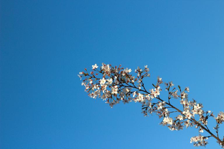 Keywords: blue sky sunny days sky views cherry blossom spring branch pink
