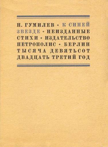 | Keywords: Blue Star by Gumilev - Front Cover.jpg  Cover of Blue Star by Nikolay Gumilev 1923 Обложка сбо ника стихов  иколая Гумилёва «К Синей звезде» 1923 http //gumilev ru/ 1923 author PD-old Books from Germany 1923 Book covers from Germany Nikolai Gumilev Published in Berlin Books from Germany in Russian |