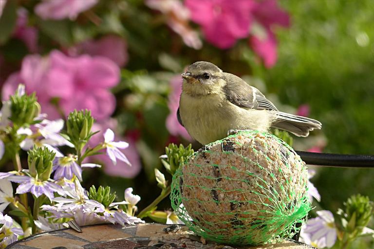 Keywords: blue tit cyanistes caeruleus bird young foraging garden
