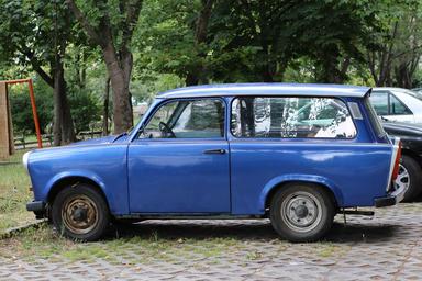 Keywords: blue trabant car old germany retro gdr side part on the side white timber parking