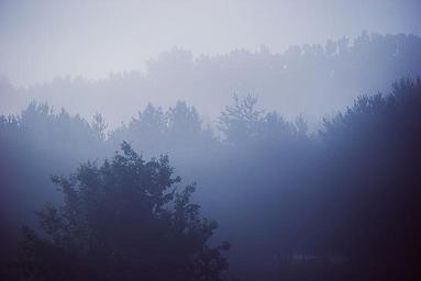 Keywords: blue trees forest woods nature landscape foggy sky