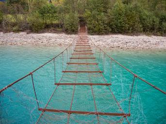 Keywords: blue water river norway suspension bridge bridge mirroring blue hour background inspiration nature