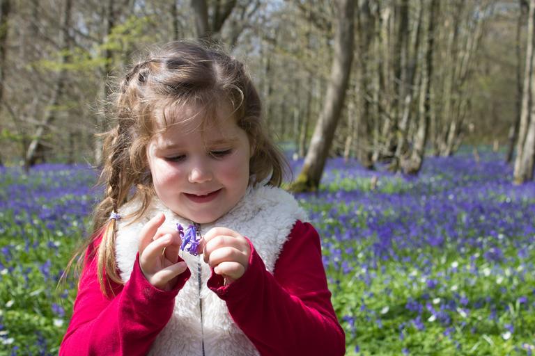 Keywords: bluebells woods english spring blue woodland countryside nature flowers landscape outdoors toddler fun girl child smiling happy forest trees