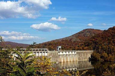 Keywords: bluestone west virginia dam power energy mountains autumn fall forest trees woods sky clouds architecture landmark