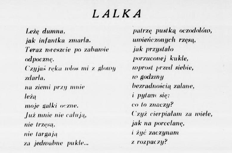 Keywords: Bluszcz rok LXII nr 14, 6 kwietnia 1929 p05-01.jpg pl skan z czasopisma PL 1929 http //www wbc poznan pl/dlibra/publication id 90510 from dirids 1 tab 1 lp 1 QI 1A924FBA1EA9510E98FAB93D43665DA6-1 WBC Maria Pawlikowska-Jasnorzewska 1891-1945 other versions Custom license marker 2016 01 02 PD-old-auto-1996 1945 Poems by Maria Pawlikowska-Jasnorzewska published in 'Bluszcz' magazine Uploaded with UploadWizard |
