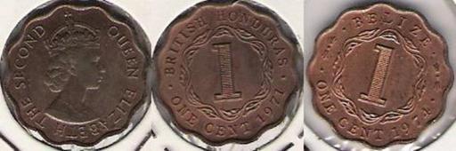 Keywords: BLZ007.JPG Belize 1 cents 1971 British Honduras - Honduras Británica y 1974 Belize Coins of Belize Coins of British Colonies Elizabeth II of the United Kingdom on coins