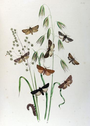 | Keywords: BMAT1-22.jpg en Avena fatua; Briza media Lytaea umbrosa; Lytaea leucographa; Lytaea albimacula; Charaeas cespitis; Charaeas nigra; Cerapteryx graminis; Rusina ferruginea Plate 22 1845 British Moths and their Transformations Volume I 1845 http //caliban mpiz-koeln mpg de/westwood/moths1/high/IMG_3322 html Henry Noel Humphreys and John Obadiah Westwood PD-old Uploaded with UploadWizard British Moths and their Transformations Volume I | ||||