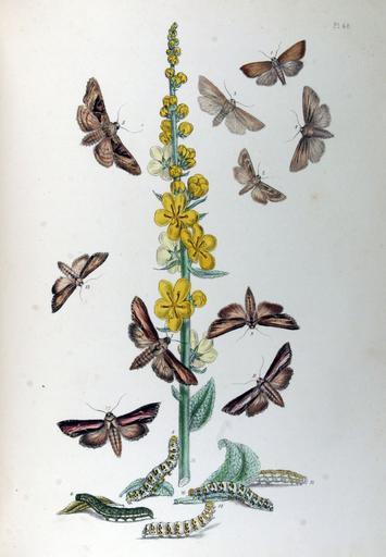 | Keywords: BMAT1-48.jpg of plate 48 p 220 Fig 1 Simyra musculosa of collections properly Leucania phragmatidis See plate 47 fig 16 Fig 2 Leucania musculosa on Continent Fig 3 Simyra nervosa the tawny-veined wainscot Fig 4 Simyra venosa the powdered wainscot Fig 5 Phlogophora meticulosa the angle-shades 6 The caterpillar Fig 7 Cucullia verbasci the Mullein 8 The caterpillar Fig 9 Cucullia scrophulariae the water betony 10 The caterpillar Fig 11 Cucullia thapsiphaga the shepherd's purse 12 The caterpillar Fig 13 Cucullia lychnitis 14 The caterpillar Fig 15 Cucullia prenanthis Fig 16 plant Verbascum pulverulentum the powdered Mullein 1845 British Moths and their Transformations Volume I 1845 http //caliban mpiz-koeln mpg de/westwood/moths1/high/IMG_3403 html Henry Noel Humphreys and John Obadiah Westwood PD-old Uploaded with UploadWizard British Moths and their Transformations Volume I |