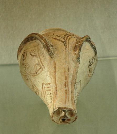 Keywords: Boar rhyton Louvre AO18521.jpg Boar rhyton Mycenaean ceramic imported by Ugarit Found in the acropolis of Ras Shamra Rhyton en forme de tête de sanglier Céramique mycénienne importée par Ugarit Provenance acropole de Ras Shamra ca 1300 1100 BC ceramic Institution Louvre object department Near Eastern antiquities room ID 128 21628 object history credit line ProvenanceEvent excavated Claude Schaeffer 1935 accession number Louvre number 18521 own photo date 2006 Marie-Lan Nguyen artwork license PD-old-100 photo license other versions Mycenaean pottery Ancient Greek pottery rhyta Ugarit Near Eastern Antiquities in the Louvre - Room B Boars in ancient Greek pottery Boar heads in art Mycenaean Rhyta