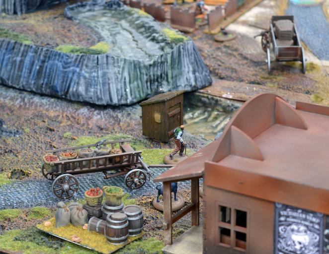 Keywords: board game miniature action figures characters toy hobby the playing field scene malifaux staging placement the consignment game role-playing game card game
