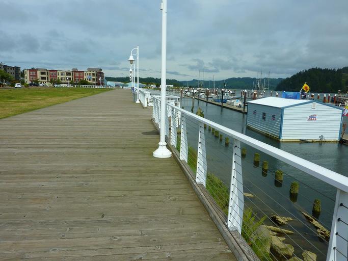 Keywords: boardwalk pier harbor bay water dock walkway railing wooden boat florence oregon fishing marina florence oregon walk stroll walk way relaxation outside tourist old town tourist magnet tourism scenic scenery