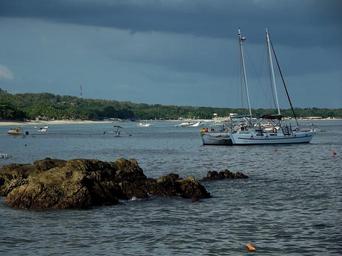 Keywords: boat catamaran seascape sea yacht summer vacation sailing leisure water banca shore coastline coast beach scenery