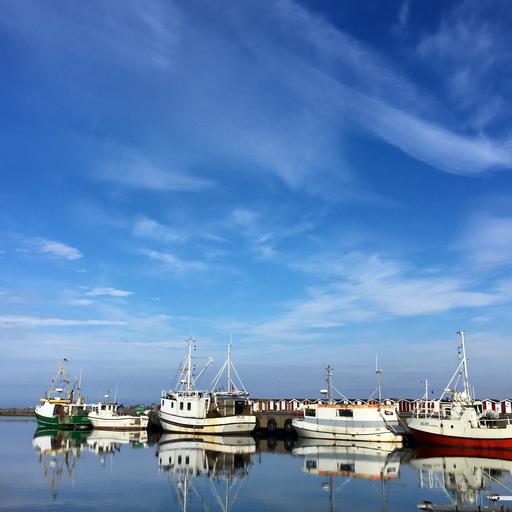Keywords: boat himmel blue fishermen calm morning sweden varberg