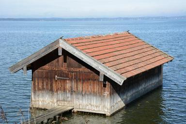 Keywords: boat house lake water nature waters hut timber construction log cabin tile roof
