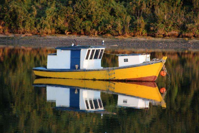 Keywords: boat laguna picturesque southern chile fishermen boats cove