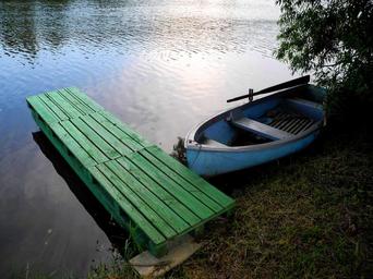 Keywords: boat pier water rowboat pond edge of the pond water-level