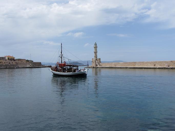 Keywords: boat port the chania island of crete mediterranean sea greece lighthouse water city