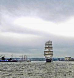 Keywords: boat ship sailing boat sky evening sunset water river ship sails hull travel scenic color romantic coast