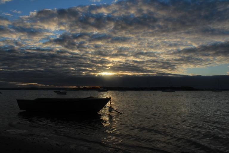 Keywords: boat sunrise water outdoor sea sky clouds ocean horizon