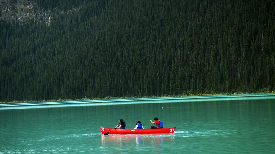 Keywords: boating relaxing paddling lake water trees atmosphere