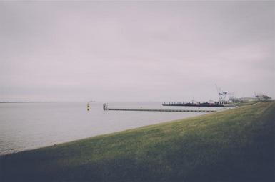 Keywords: boats docks water grass cloudy
