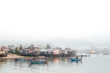 Keywords: boats river travel tropical tourism huts stilt houses fishing village village