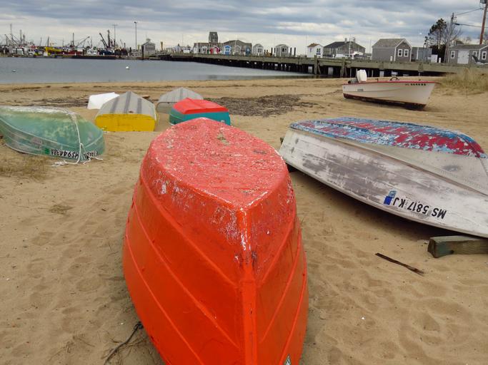 Keywords: boats small dingy beached array assortment lifestyle sand beach cape cod provincetown harbor orange