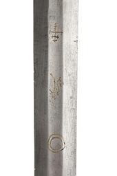 | Keywords: Bödelssvärd - Livrustkammaren - 102649.tif LSH artwork sv Fäste av stål Hög fyrsidig knapp avsmalnande nedåt och med fasade hörn Raka släta parerstänger avsmalnande mot krysset och med runt tvärsnitt Kavellindning av tvinnad ståltråd upptill och nertill avslutad av krans <br/>Klinga tvåeggad bred med tvärt avskuren något bågformig ytterände Starka delen med flack hålkäl vari på båda sidor inlagt en springande ulv Passauer Wolf märke för klingsmederna i Passau samt två koncentriska ringar <br/>Ur Tidörustkammaren gåva 1858 till Livrustkammaren original caption Bödelssvärd<br/> Nyckelord Föremålsbild Klinga century 16 g 2040 size mm 832 klinga size mm 55 klinga size mm 1064 LRK Axel Oxenstierna af Södermöre Riddartid - sköna riddare och tappra jungfrur 2002 Otroligt 2015 Livrustkammaren place of origin DE original filename lm_dig16514 40157 inventory number LRK 3611 102649 CC-BY-SA Jens Mohr <gallery caption Different images of same object > File Klinga på bödelssvärd 1500-tal - Livrustkammaren - 102650 tif File Bödelssvärd 1500-tal - Livrustkammaren - 102646 tif File Bödelssvärd Tyskland 1500-talet - Livrustkammaren - 789 tif File Bödelssvärd 1500-tal - Livrustkammaren - 102644 tif </gallery> blades Executioner's sword images from Livrustkammaren Jens Mohr Media contributed by LSH dim-with multiple size templates Media contributed by LSH 2015-11 Color images from Livrustkammaren |